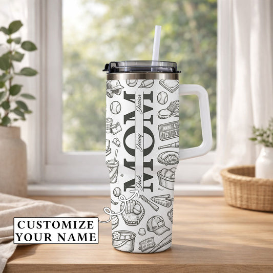 American Mom Personalized Text 40oz Insulated Mug with Handle and Straw Stainless Steel Custom Travel Cup Gift for Family Friends Couples