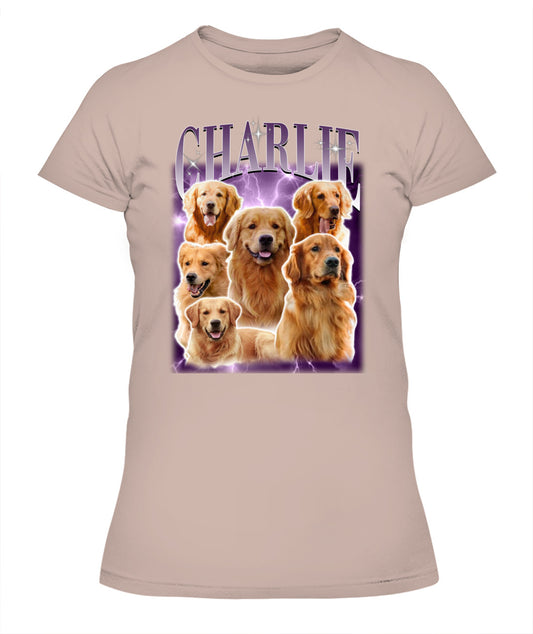 Personalized Pet Dog Cat Vintage Photo And Name Printed Lady's T-shirt