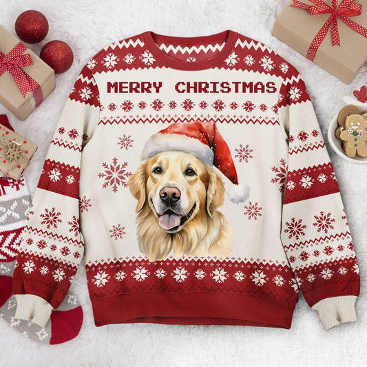 Personalized Pet Dog Cat Merry Christmas Imitation Knitted Sweatshirt