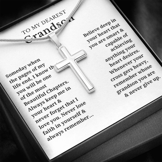 To My Dearest Grandson Artisan Cross Necklace with Snake Chain