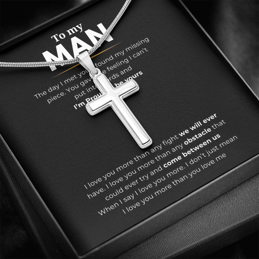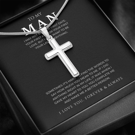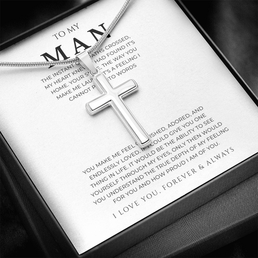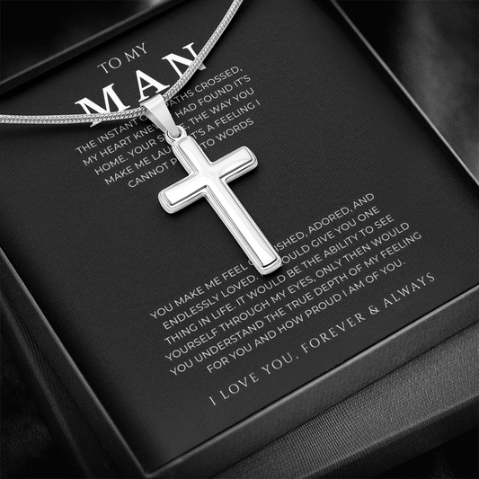 To My Man Artisan Cross Necklace with Snake Chain