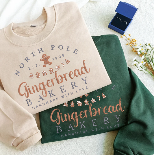 Personalized Embroidered Gingarbread Hoodie Sweatshirt T-Shirt