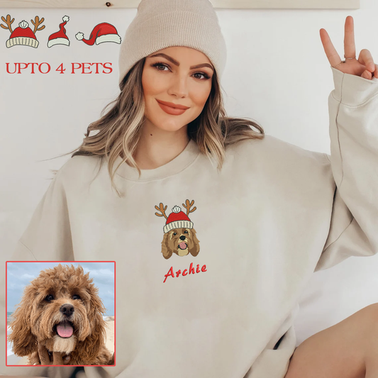 Personalized Embroidered Pet Dog Cat Christmas Hoodie Sweatshirt T-Shirt