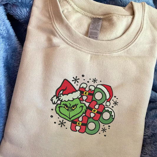 Embroidered G-r-i-n-c-h Ho Ho Ho Christmas Hoodie Sweatshirt T-Shirt