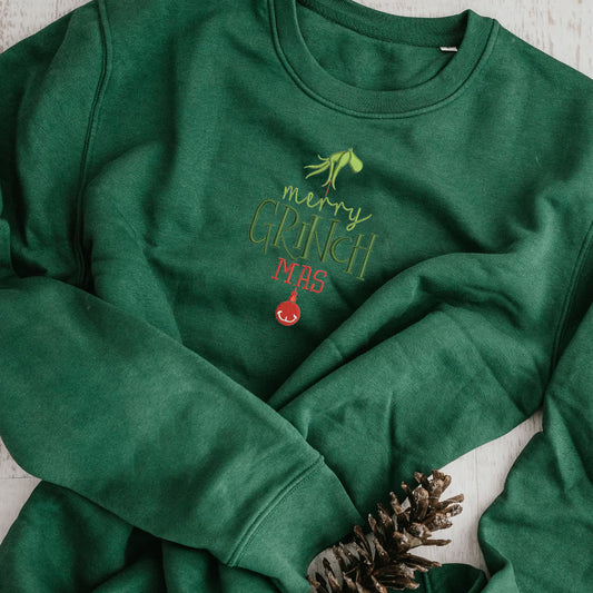 Embroidered Merry G-r-i-n-c-hmas Hoodie Sweatshirt T-Shirt