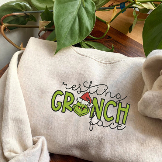 Embroidered Resting G-r-i-n-c-hmas Hoodie Sweatshirt T-Shirt