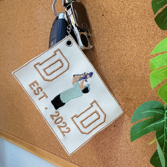 Personalized Embroidered Leather Pet Dog Cat Floral Photo Keychain