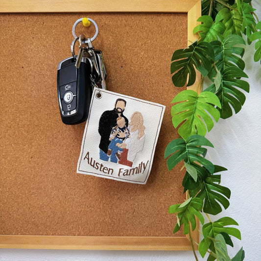 Personalized Embroidered Leather Pet Dog Cat Photo Keychain