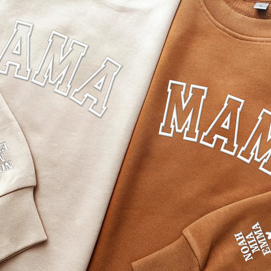 Personalized Embossed Custom Text Hoodie Sweatshirt T-Shirt with Kid Names on Sleeve