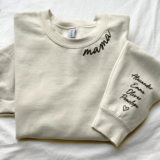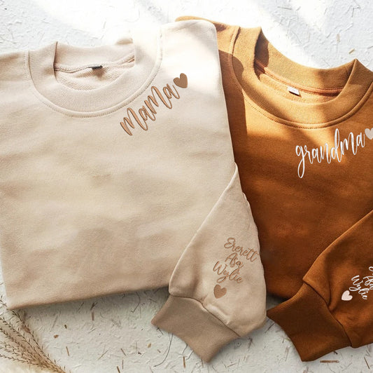 Personalized Embroidered Custom Text With Kids Names On Sleeve Hoodie Sweatshirt T-Shirt