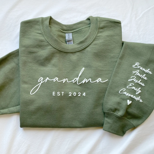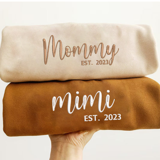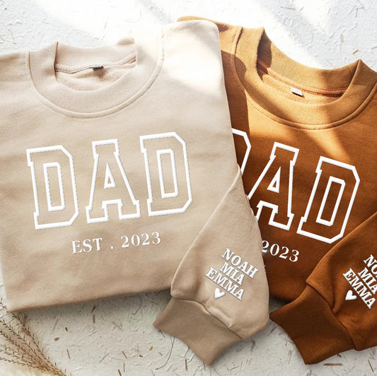 Personalized Embossed Custom Text EST Hoodie Sweatshirt T-Shirt with Kid Names on Sleeve