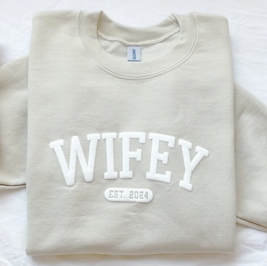 Personalized Wifey Embossed Printed Hoodie Sweatshirt T-Shirt