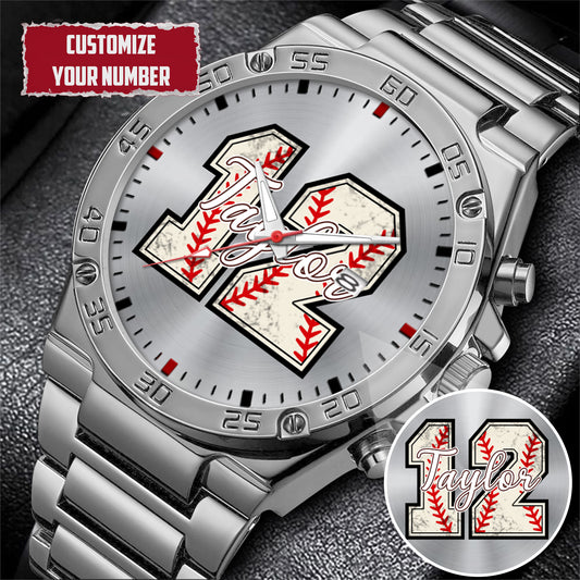 Personalized Baseball Custom Name & Number Watch Father's Day Gift For Him