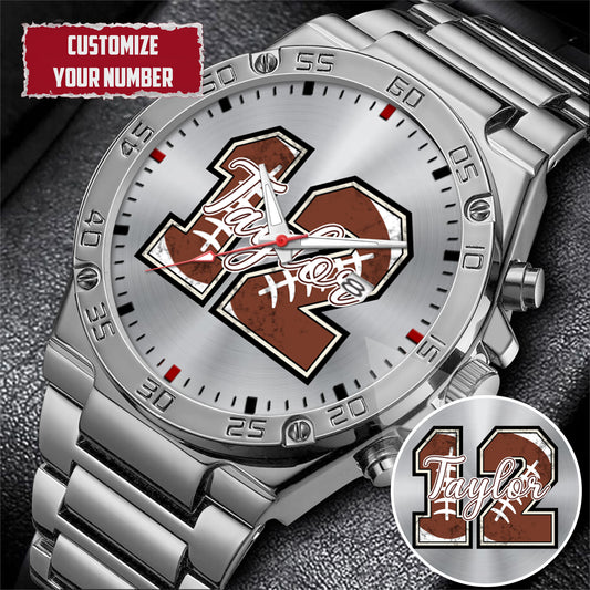Personalized American Football Custom Name & Number Watch Father's Day Gift For Him
