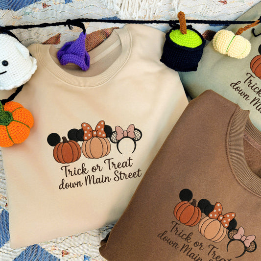 Halloween Personalized Embroidered Trick Or Treat Down Main Street Hoodie Sweatshirt T-Shirt