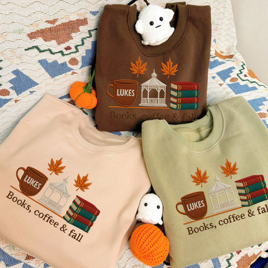 Halloween Personalized Embroidered Book Coffee & Fall Hoodie Sweatshirt T-Shirt