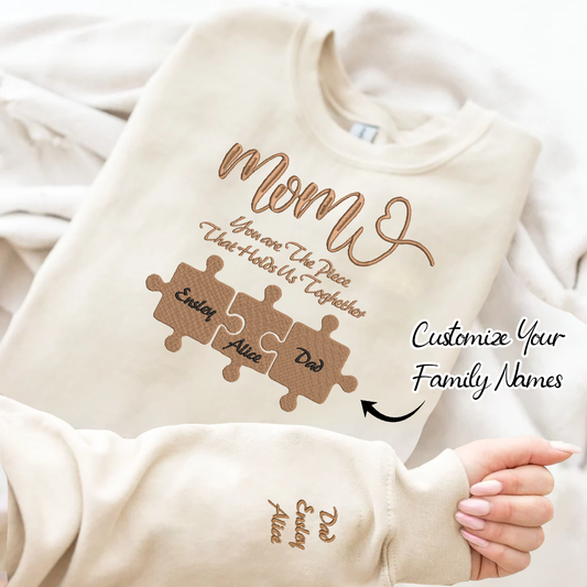 Mother's Day You Are The Piece That Holds Us Together Personalized Embroidered Family Photo Hoodie Sweatshirt T-Shirt