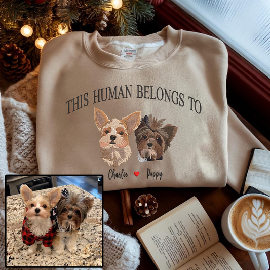 Halloween Personalized Embroidered This Human Belongs To Pet Dog Cat With Names Hoodie Sweatshirt T-Shirt