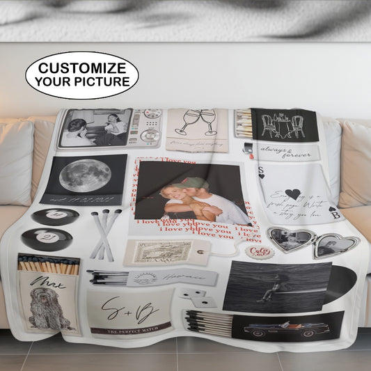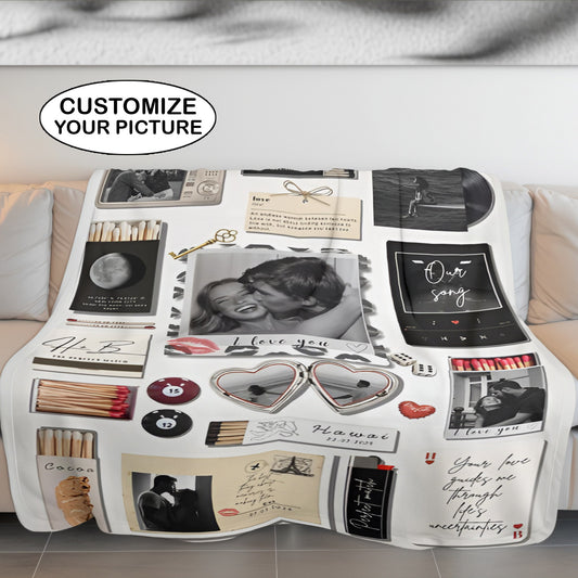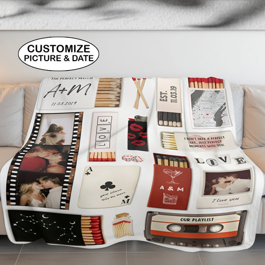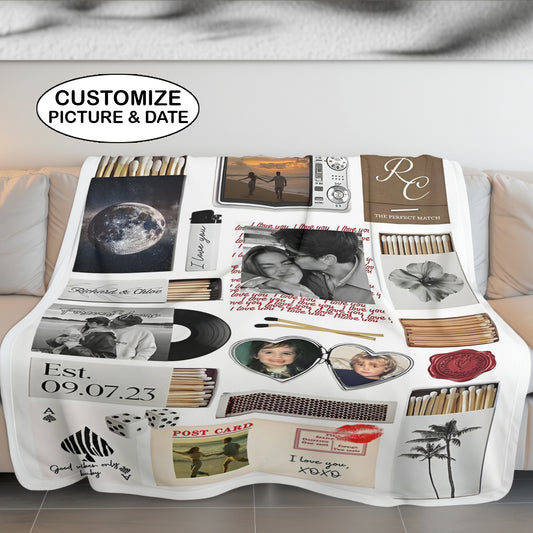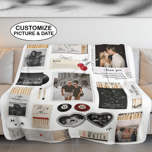 Couple Love Story Matchbook Collage Dopamine Decor - Personalized Blanket - Heartfelt Valentine, Anniversary Gift For Him, For Her