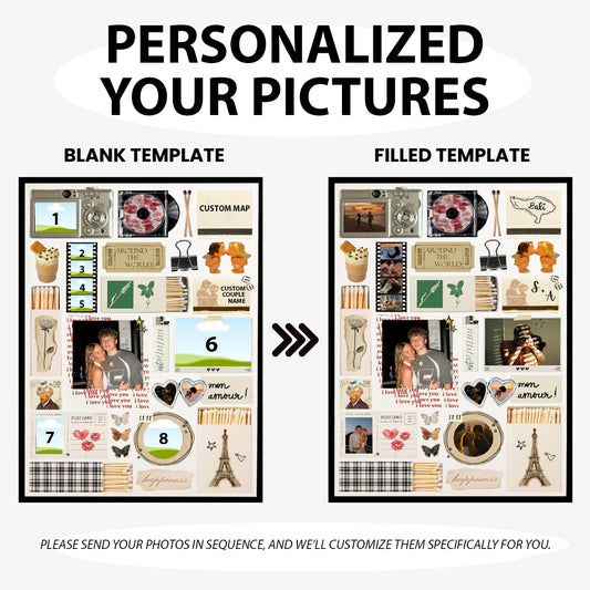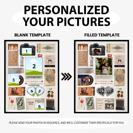 Nostalgia Couple Love Story Matchbook Collage Dopamine Decor - Personalized Poster - Heartfelt Valentine, Anniversary Gift For Him, For Her