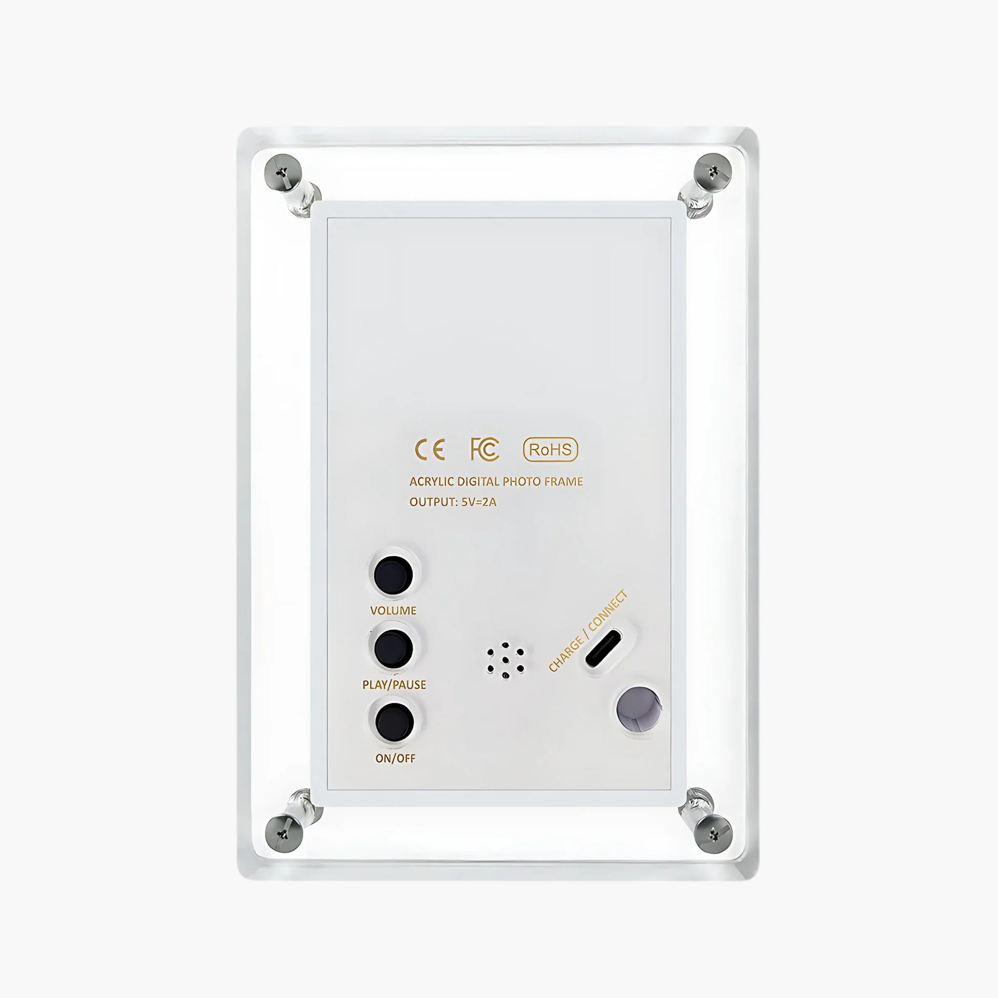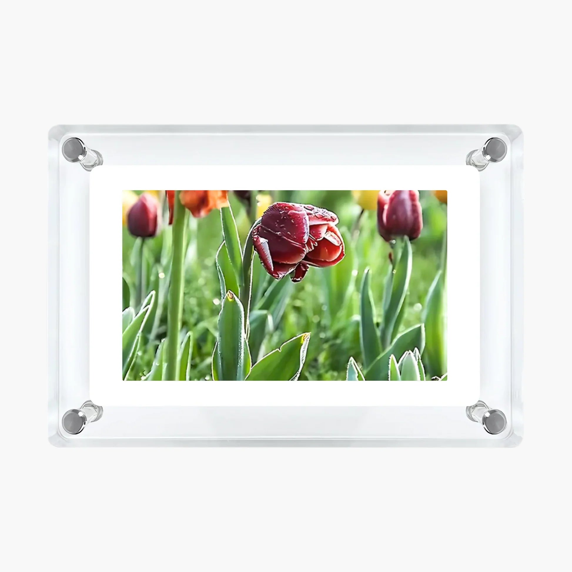 The Acrylic Frame is a digital display device designed to play videos, photos, and music. It features a high-resolution, color-calibrated screen with support for up to 1080p playback. The frame is available in one size option.