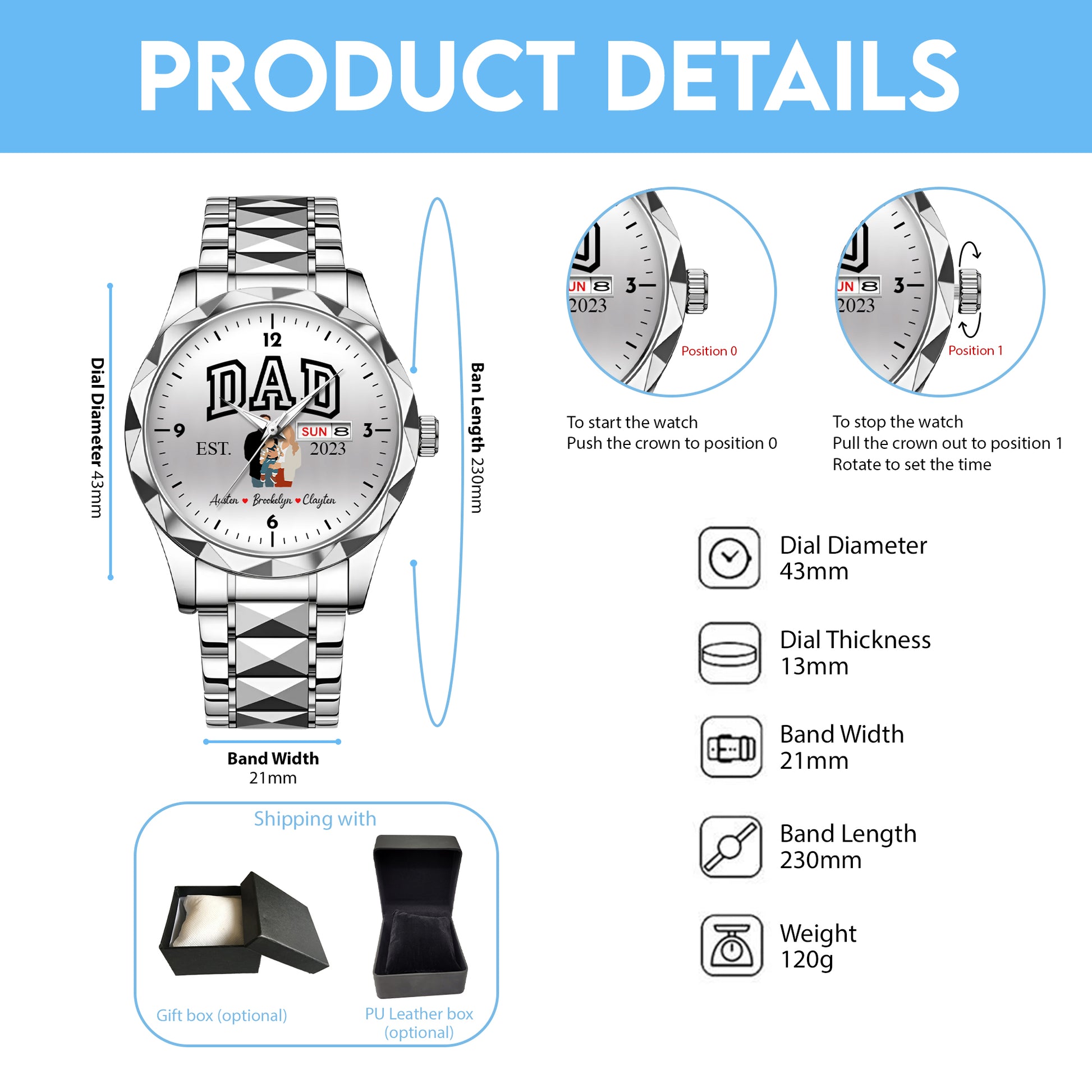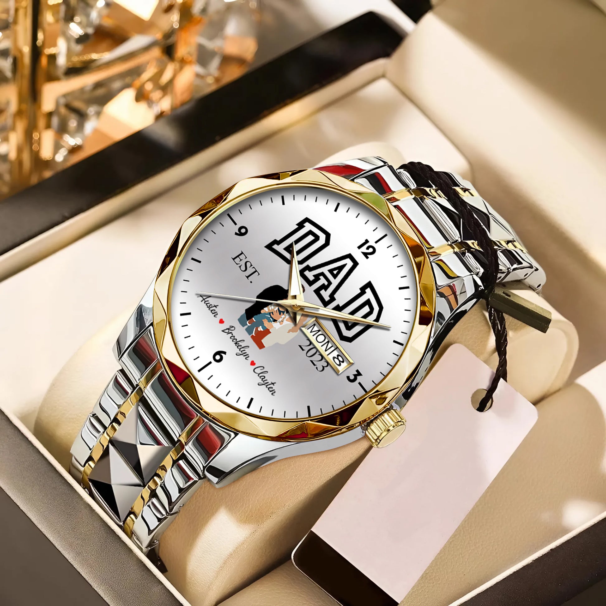 Father's Day Gift For Dad Personalized Alloy Dad Quartz Watch with Family Photos & Kids’ Names