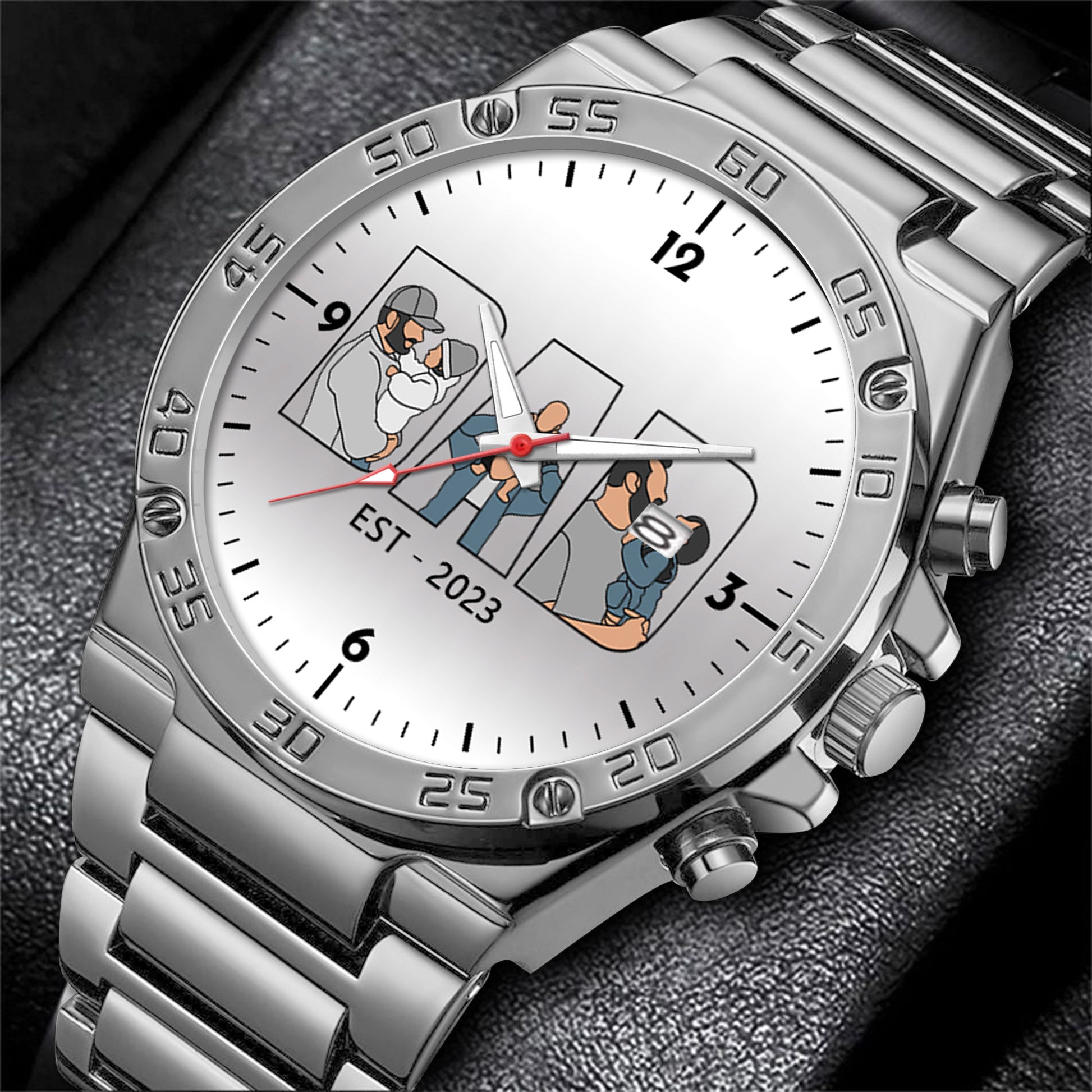 Father's Day Gift For Dad Personalized Alloy Quartz Watch with 3 Family Photos for Dad
