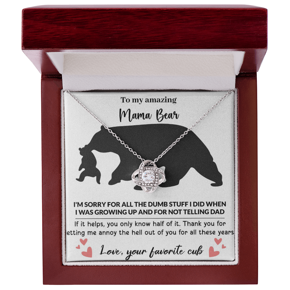 Imagine her reaction receiving this beautiful Love Knot Necklace. Representing an unbreakable bond between two souls, this piece features a beautiful pendant embellished with premium cubic zirconia crystals. Surprise your loved one with this gorgeous gift today!