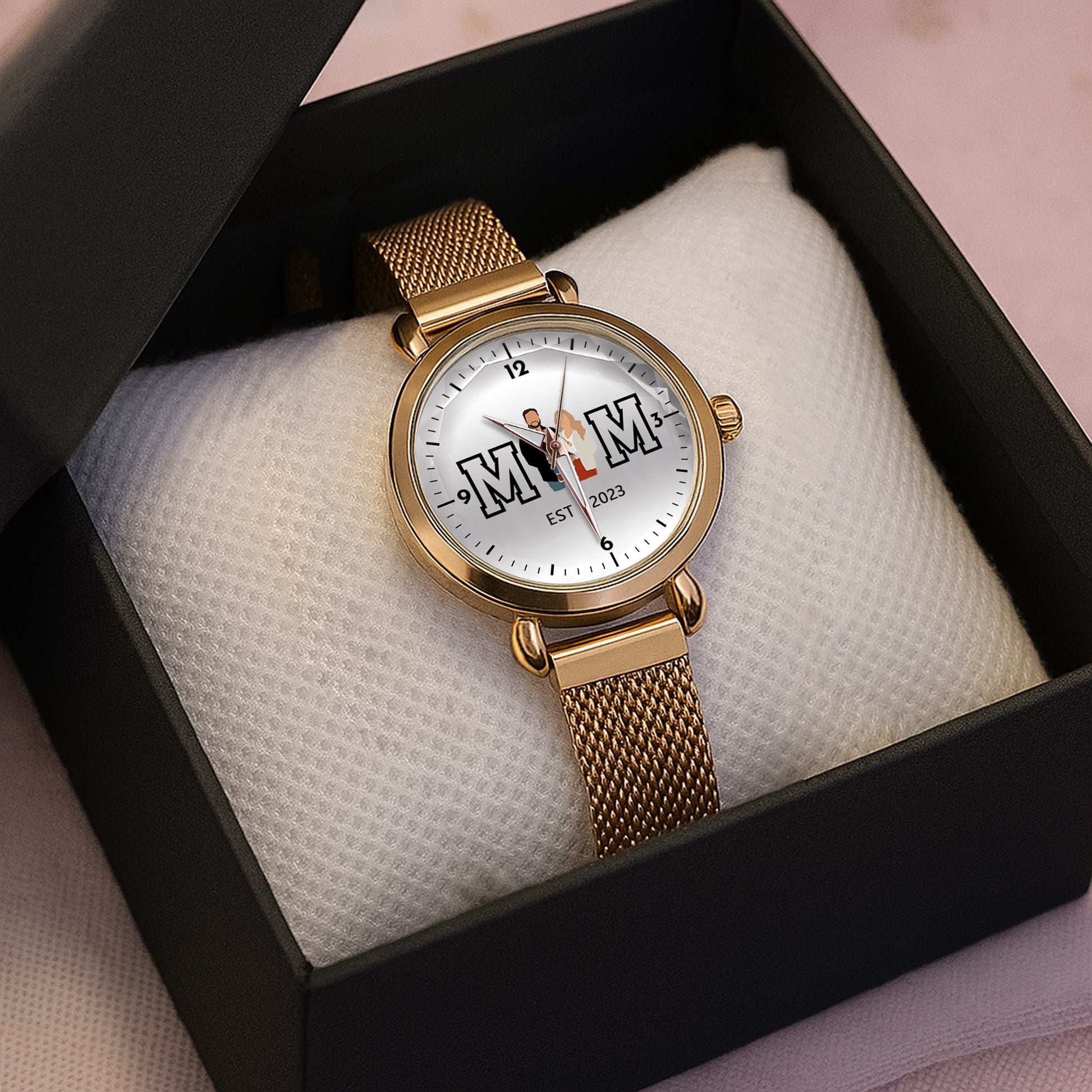Mother's Day Gift For Mom Personalized Photos MOM EST Mesh Strap Quartz Watch