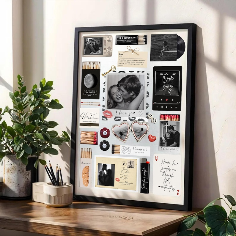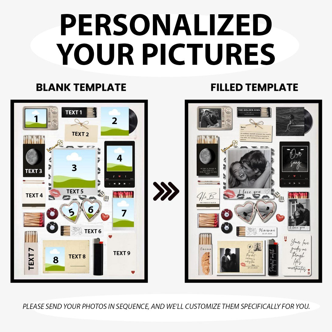 Nostalgia Couple Love Story Matchbook Collage Dopamine Decor - Personalized Poster - Heartfelt Valentine, Anniversary Gift For Him, For Her