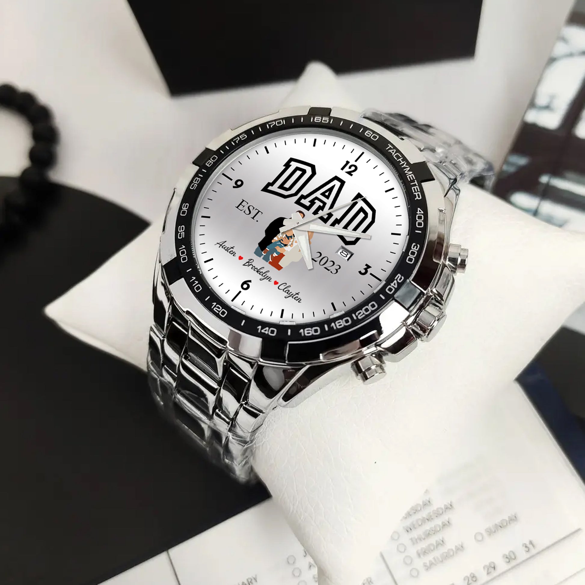 Personalized Alloy Dad Quartz Watch with Family Photos & Kids’ Names