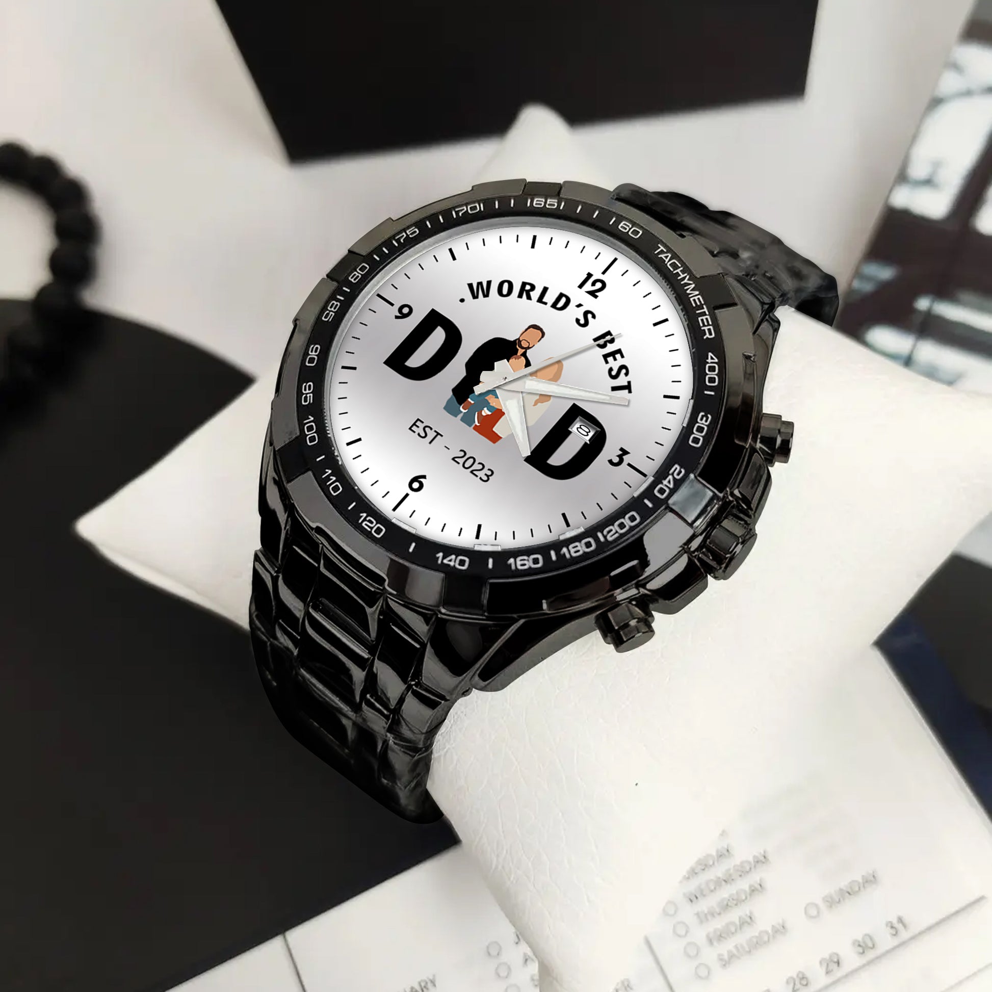 Personalized Alloy World's Best Dad Quartz Watch with Family Photos