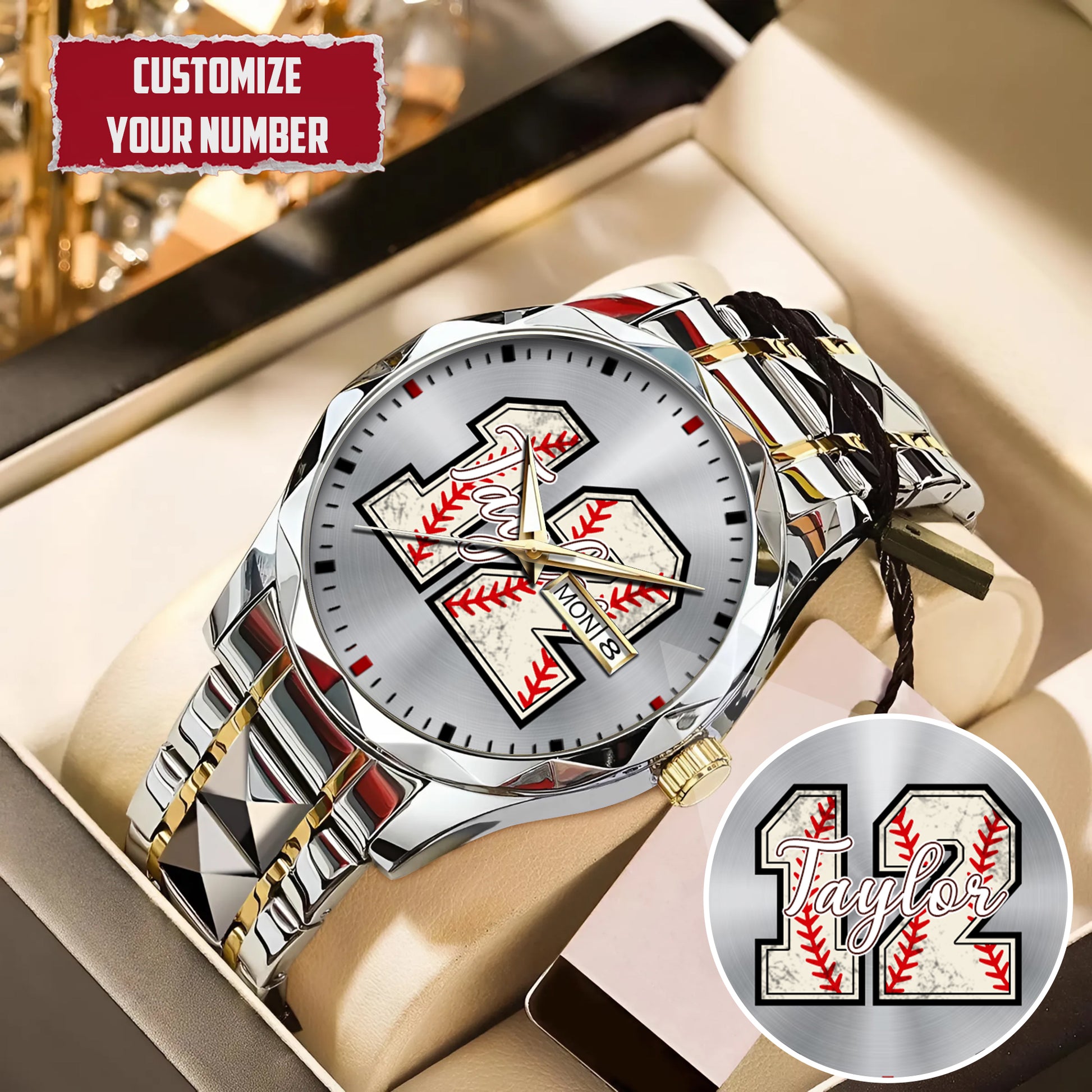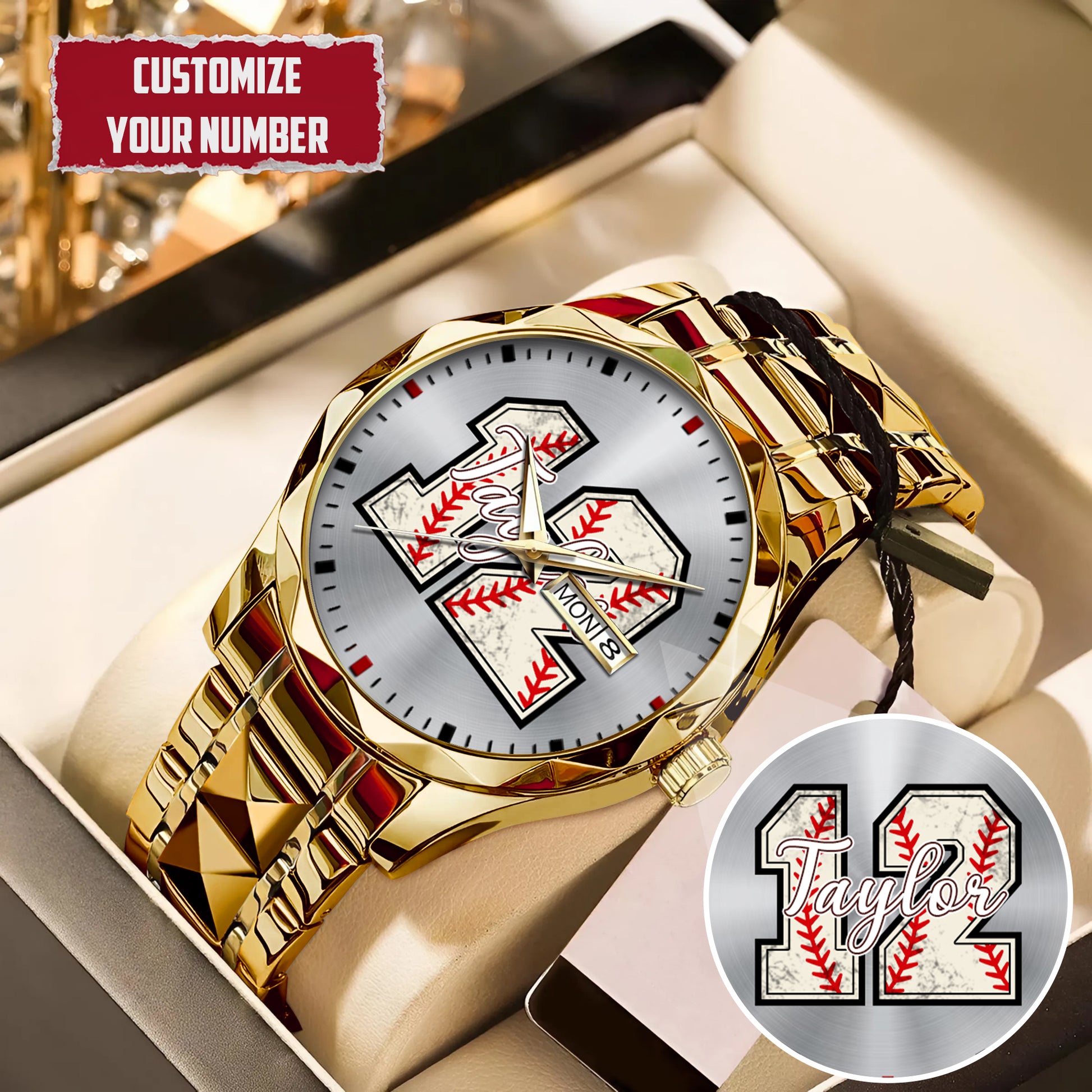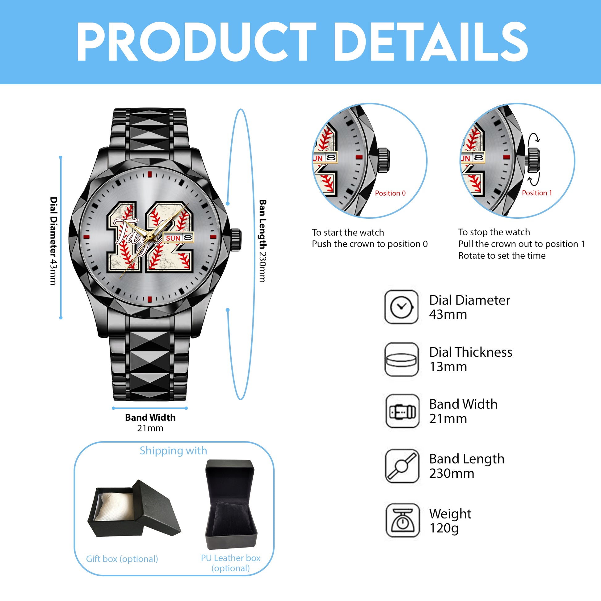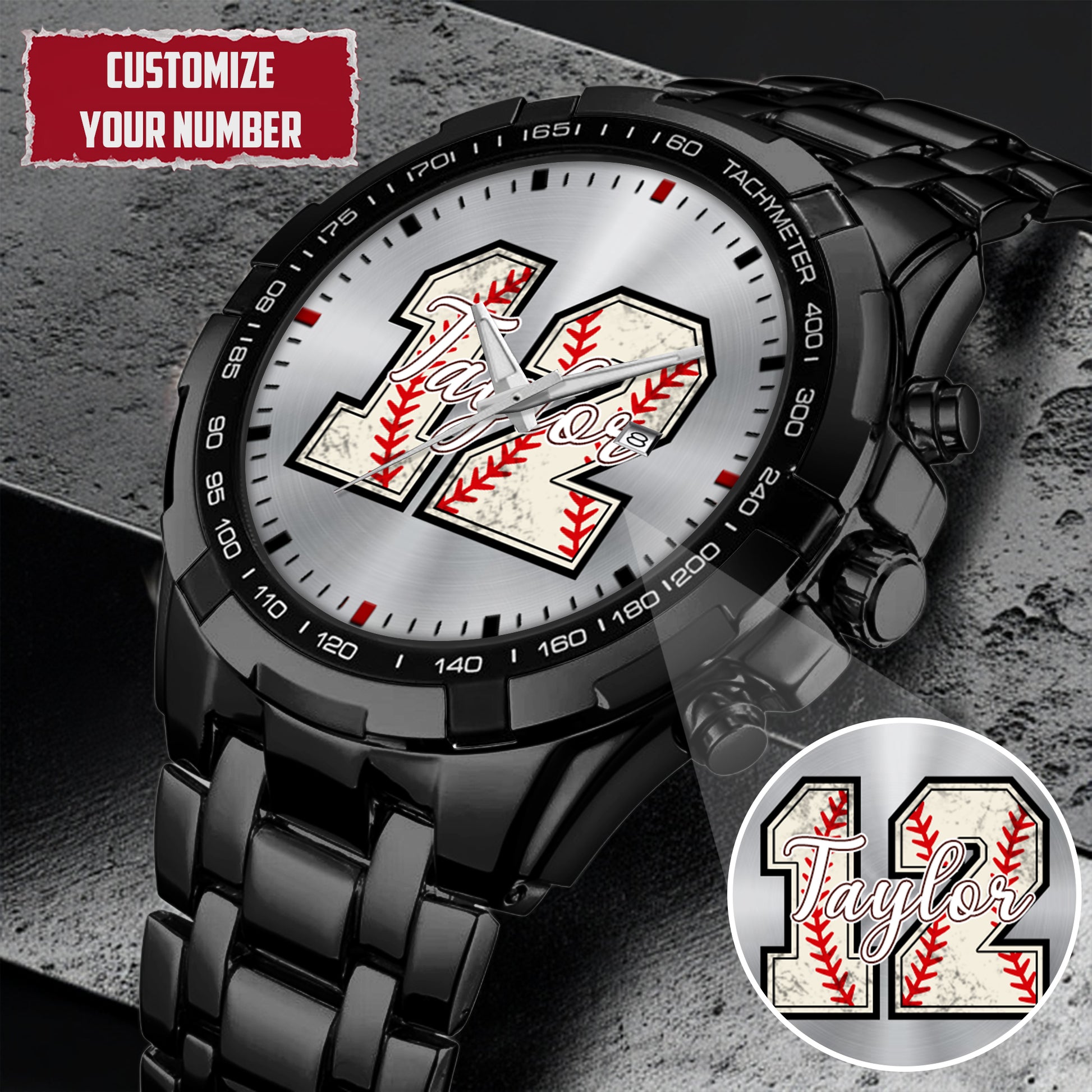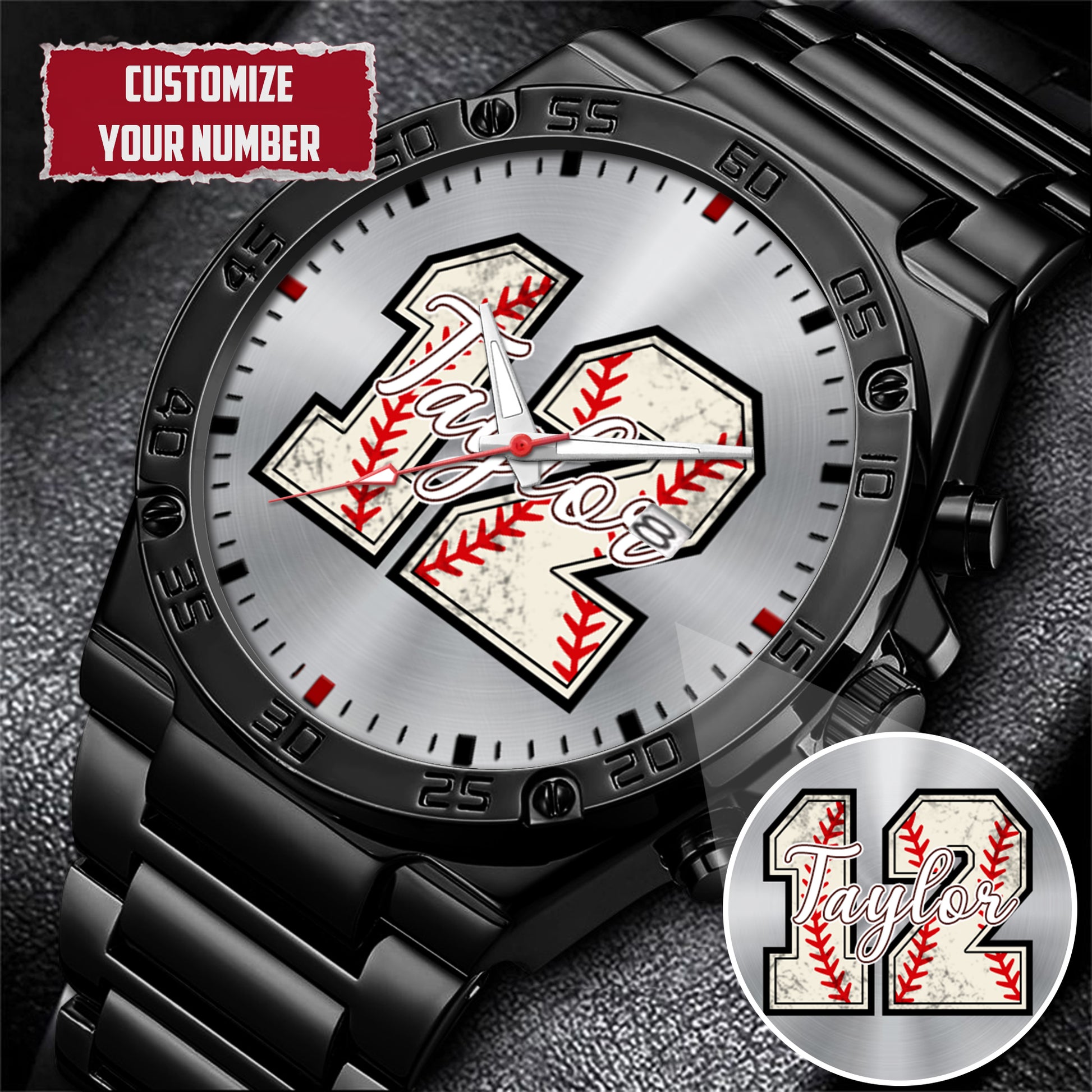 Personalized Baseball Custom Name & Number Watch Father's Day Gift For Him