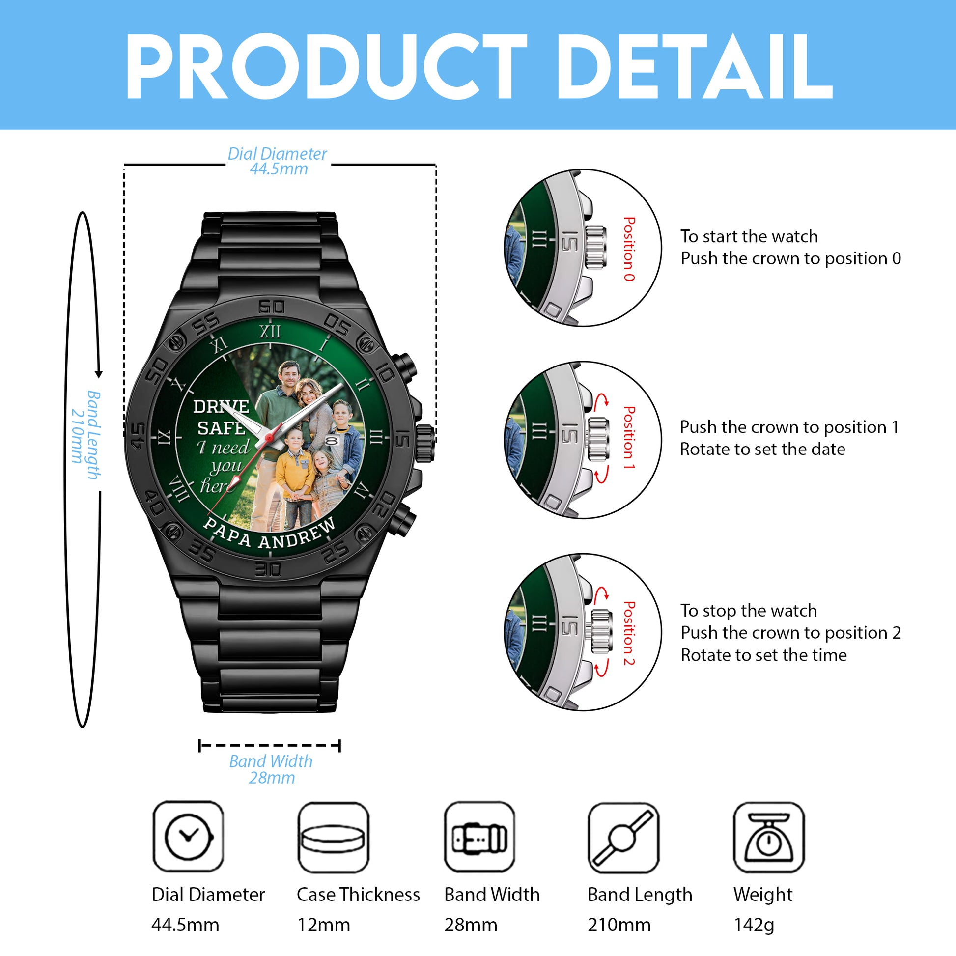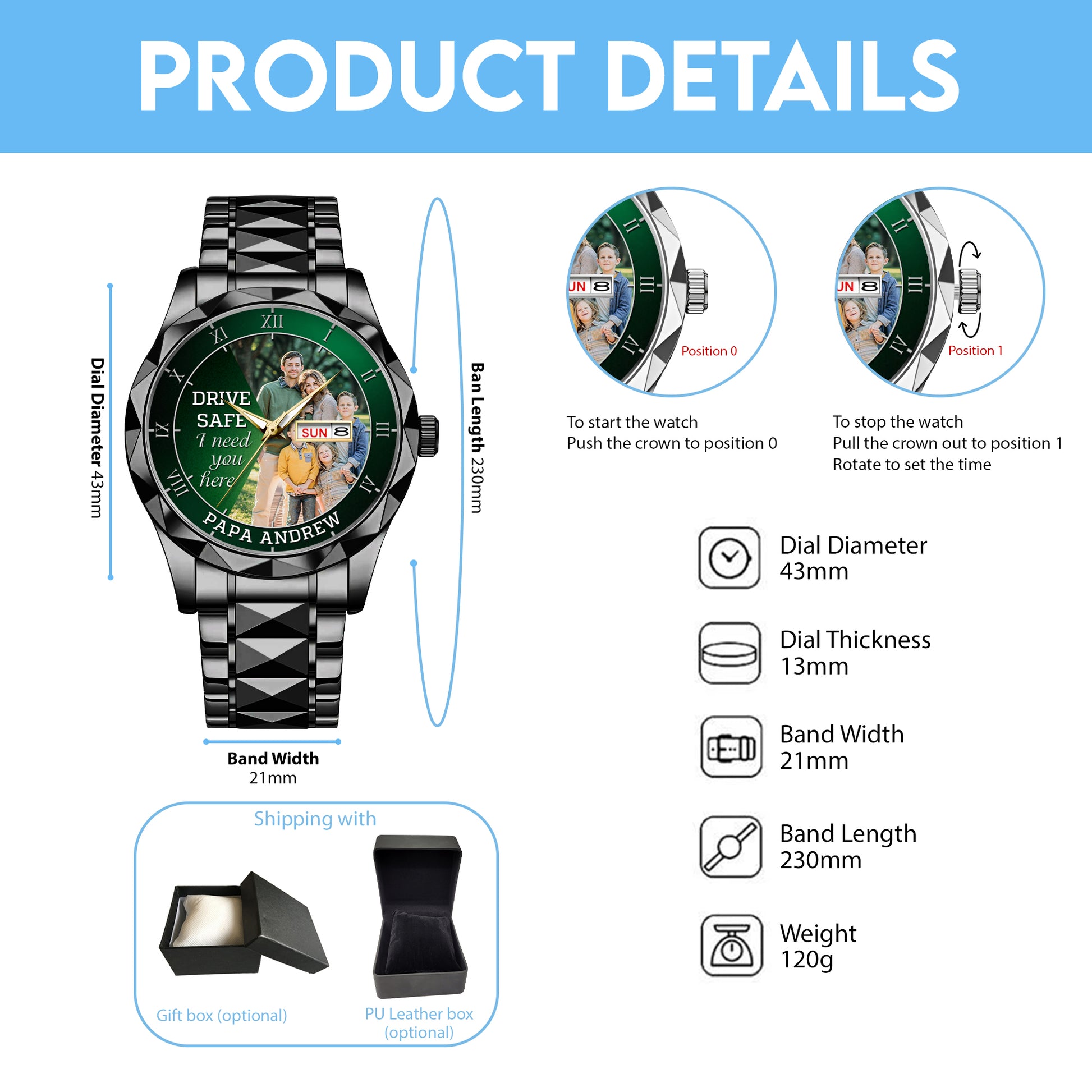 Personalized Family Photo Drive Save I Need You Here Watch Father's Day Gift For Dad