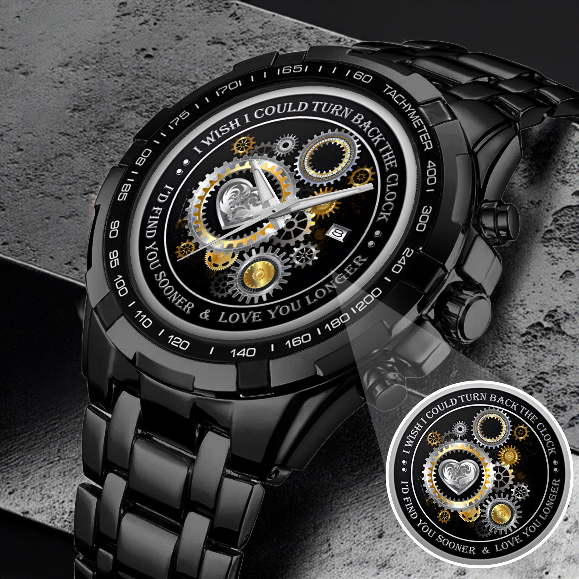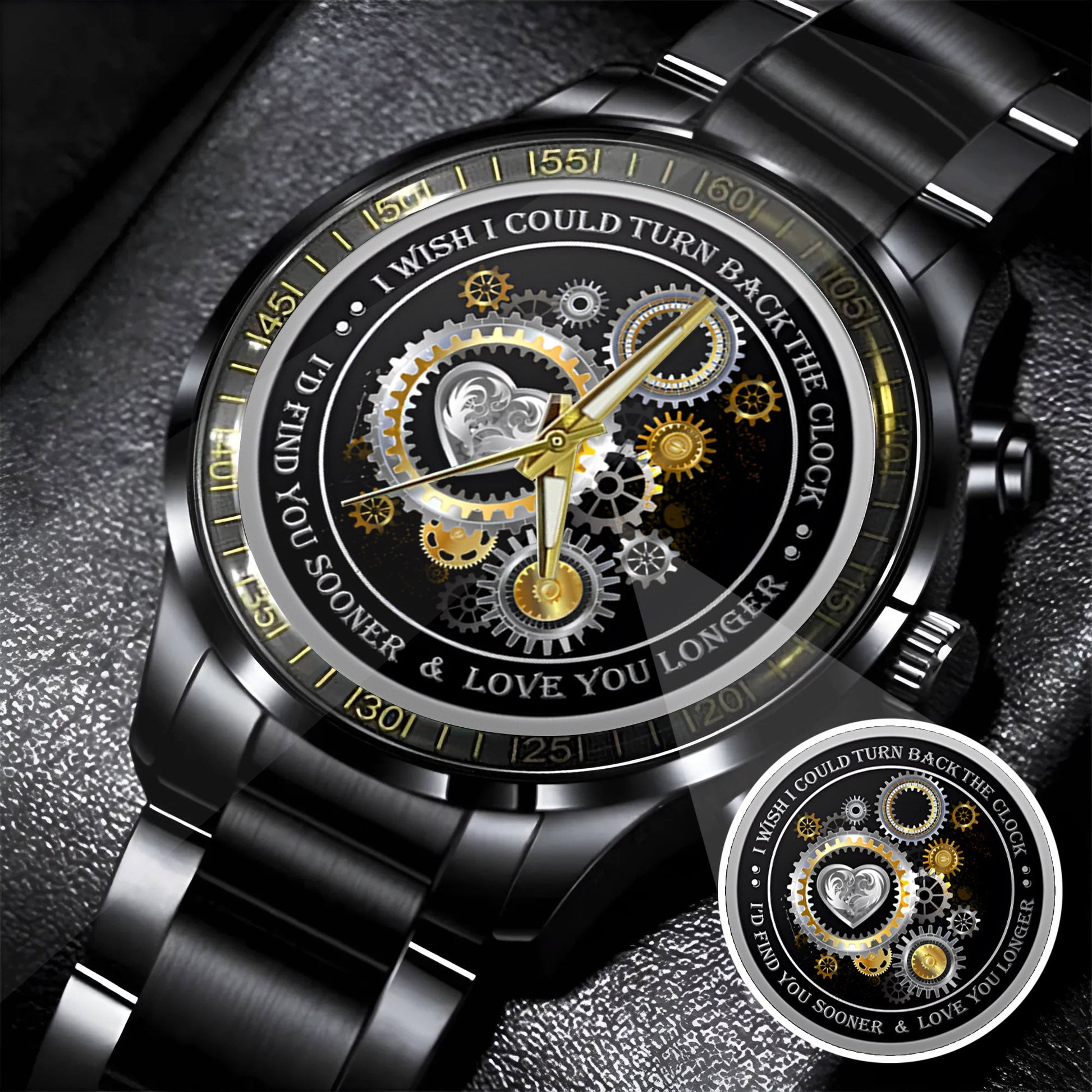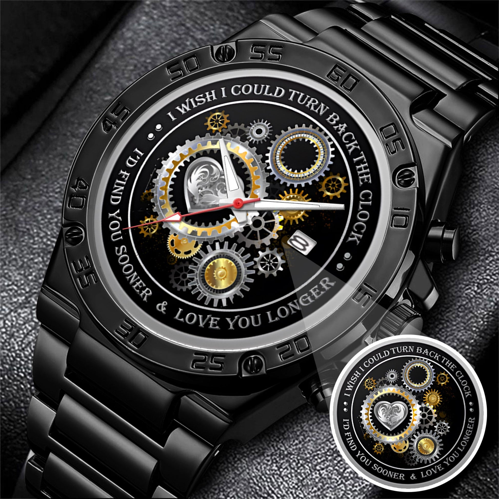 Designed with a stunning silver gear and heart motif, this watch represents destiny, connection, and a love that grows stronger with every passing second.