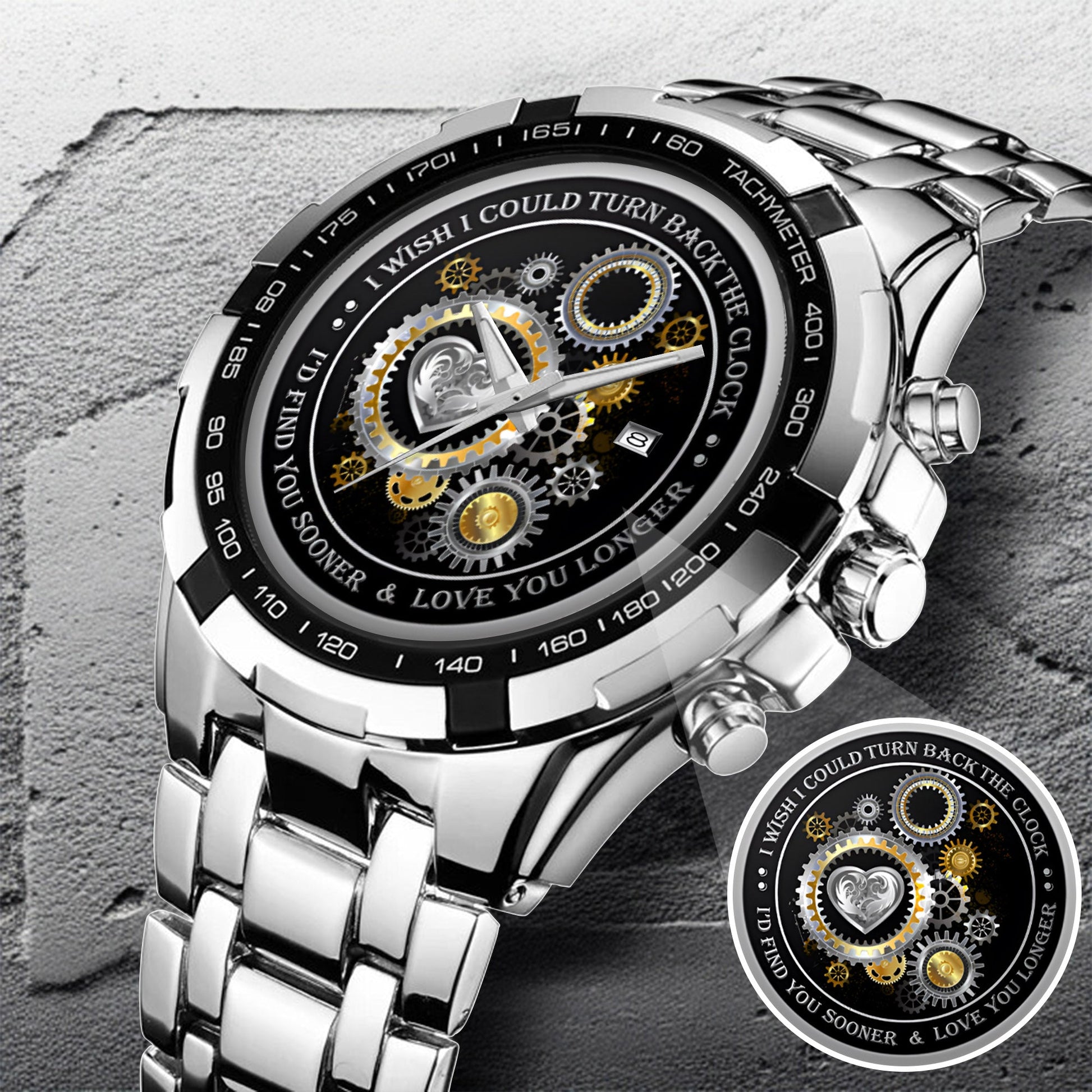 Personalized Silver Gear Heart Watch – Romantic Custom Quote Watch for Husband, Boyfriend, Anniversary & Valentine’s Day