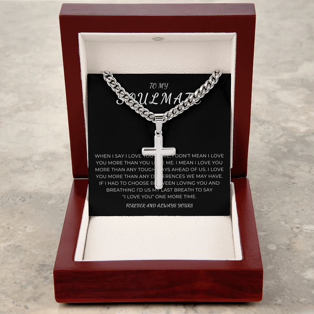 Personalized To My Soulmate Cross with Cuban Link Chain