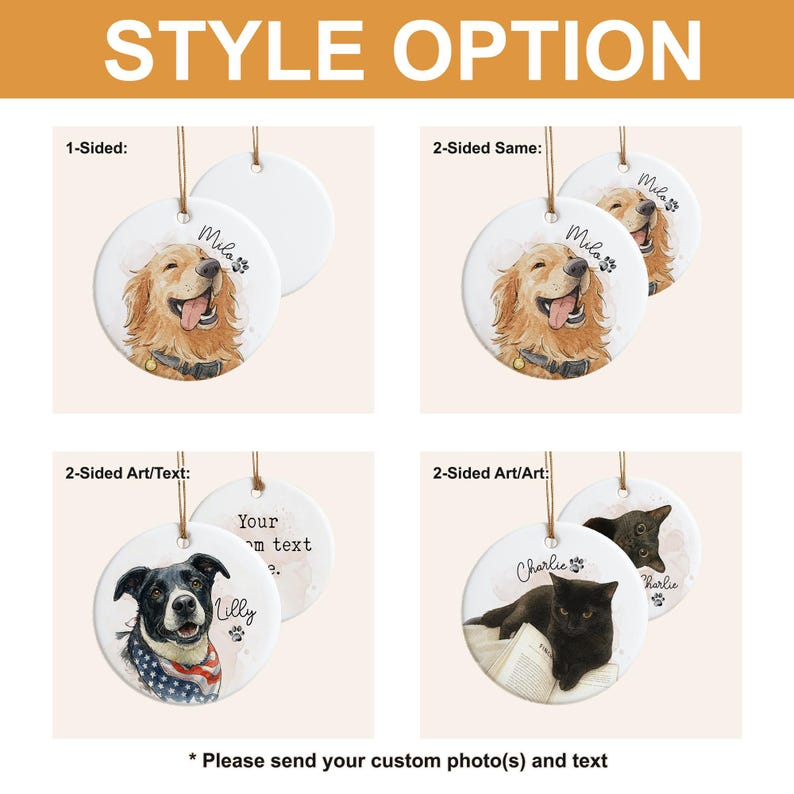 🎄 Honor the love you shared with your beloved pet this Christmas with a custom photo keepsake ornament. Each ornament is made to order with your pet’s photo—whether to celebrate the joy they bring every day or to keep their memory close after they’ve crossed the rainbow bridge. A heartfelt gift for any dog or cat lover who wants to treasure their furry friend forever. Need a special graphic or font not shown? Send me a message and we’ll create your perfect ornament! 🐾❤️