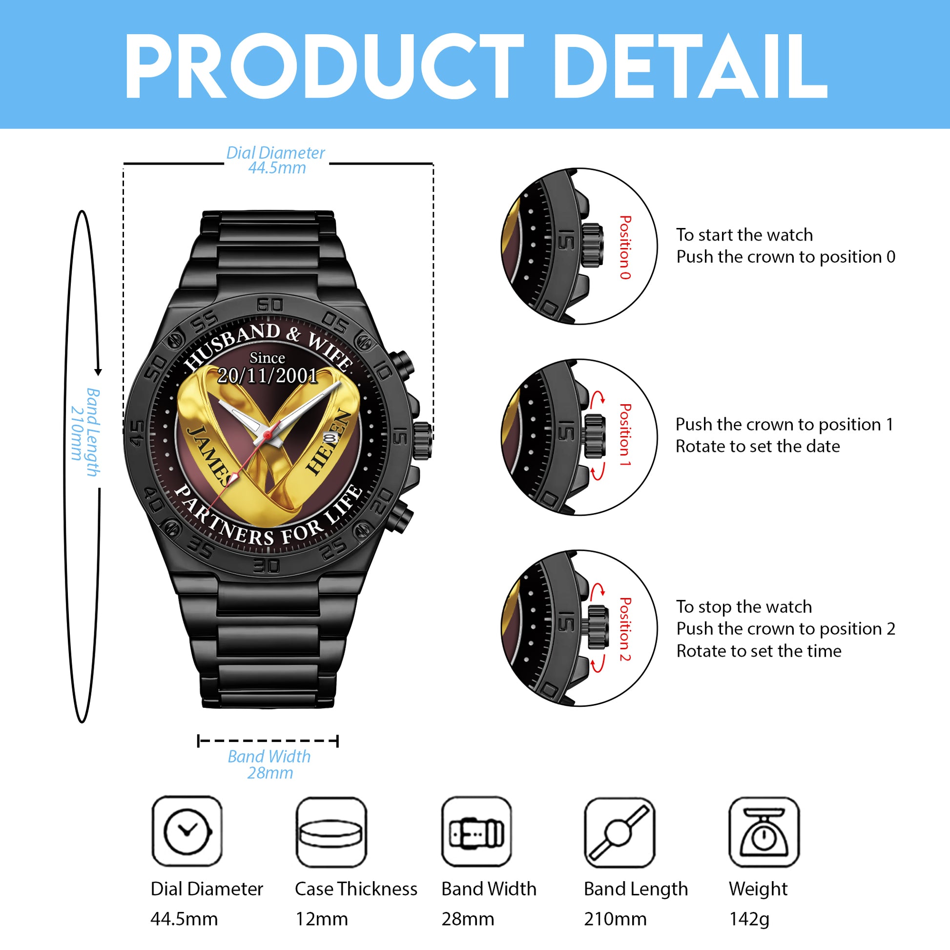 ✨ Personalized Wedding Rings - Custom Stainnless Steal Black Metal Watch ⏱🖤