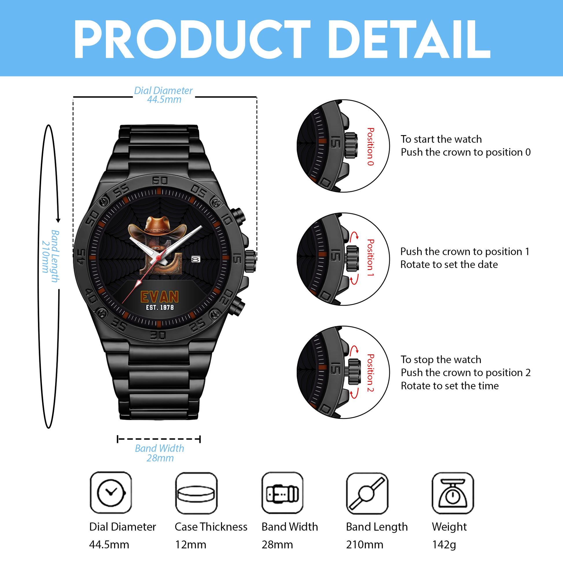 ✨ Personalized Western Letter Name Quartz Watch Father's Day Gift For Him ⏱🖤