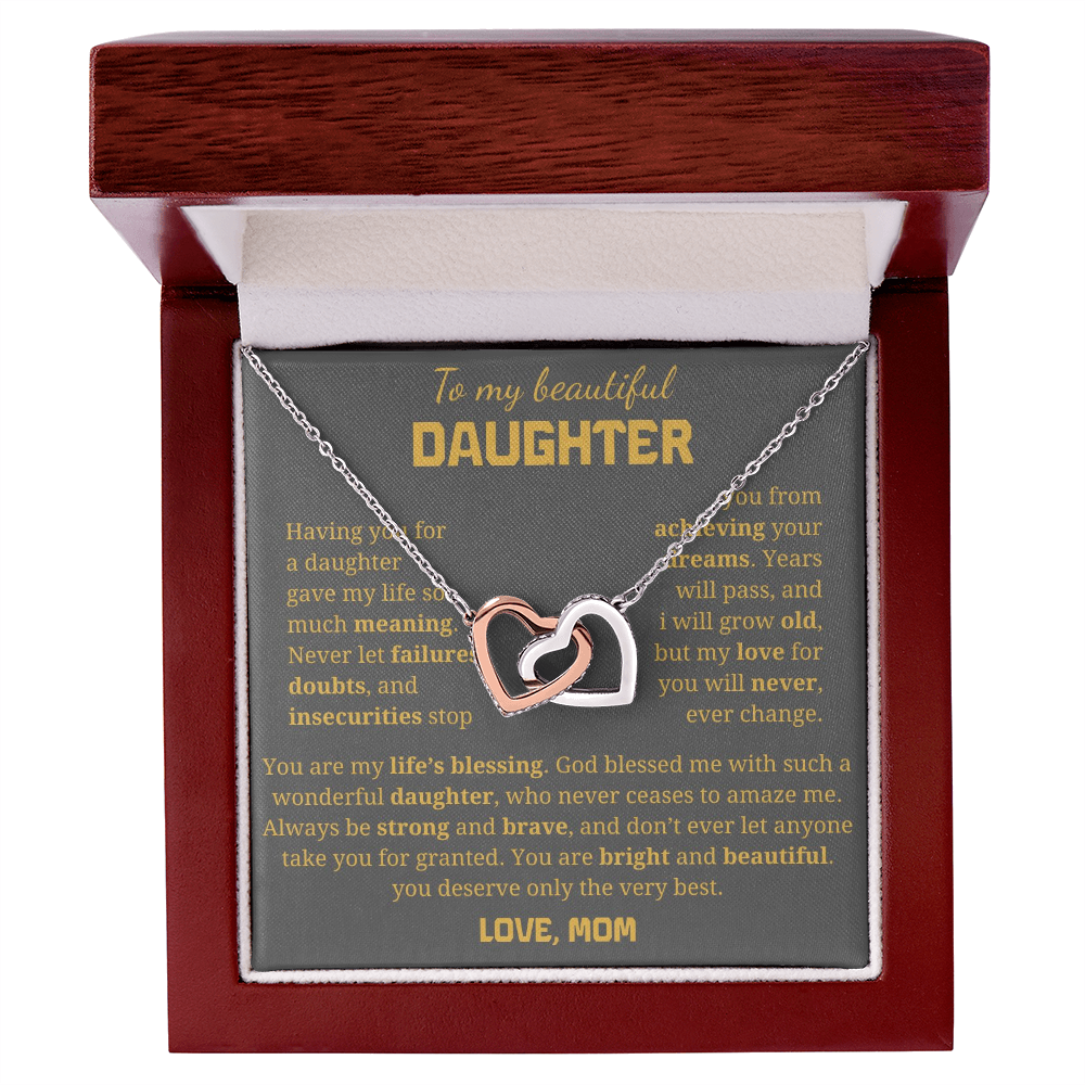 To My Beautiful Daughter Interlocking Hearts Necklace